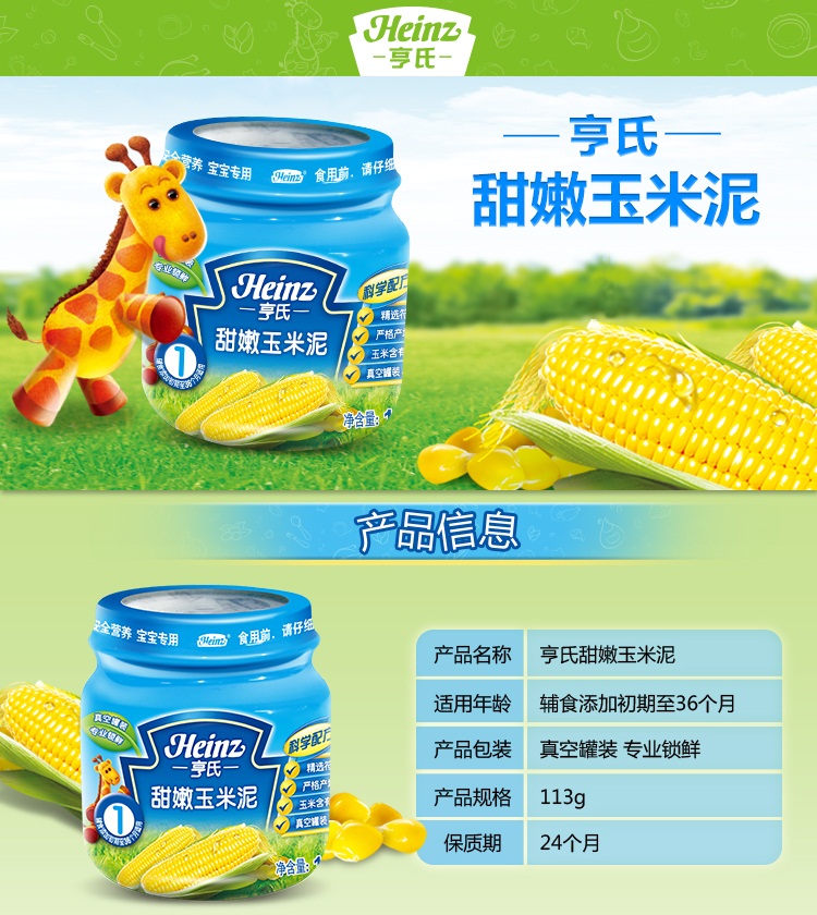 • 商品名称:亨氏 (Heinz) 甜嫩玉米泥 113g