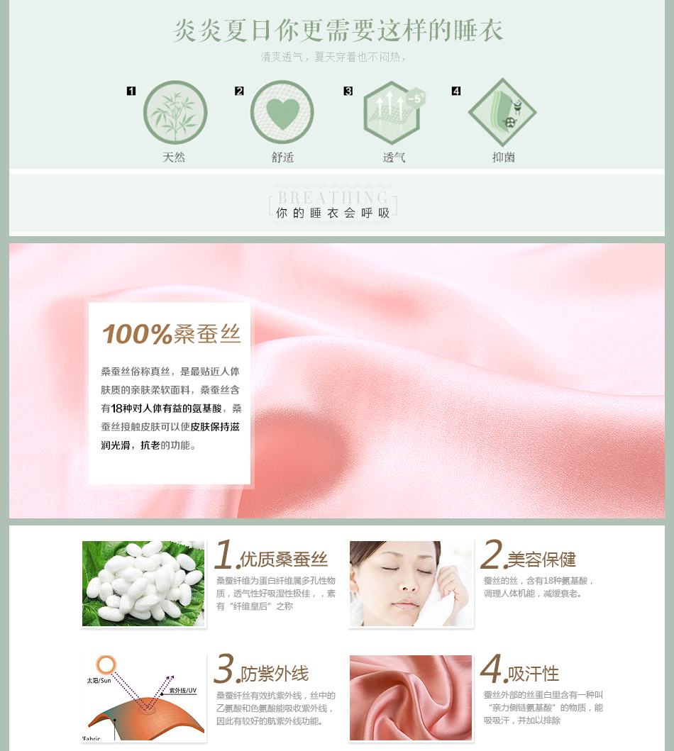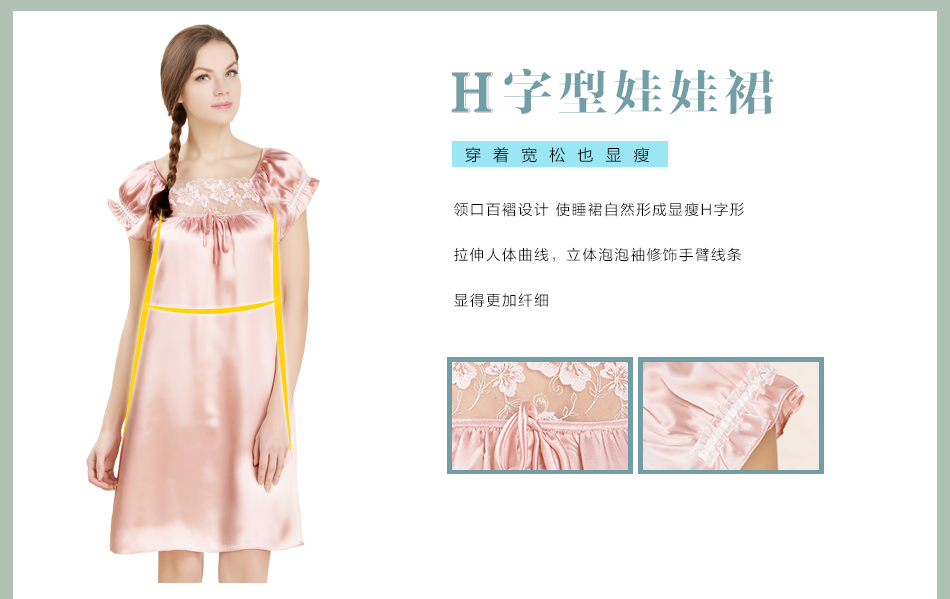 • 商品名称:一米画纱桑蚕丝吊带睡裙女夏季纯色真丝睡衣